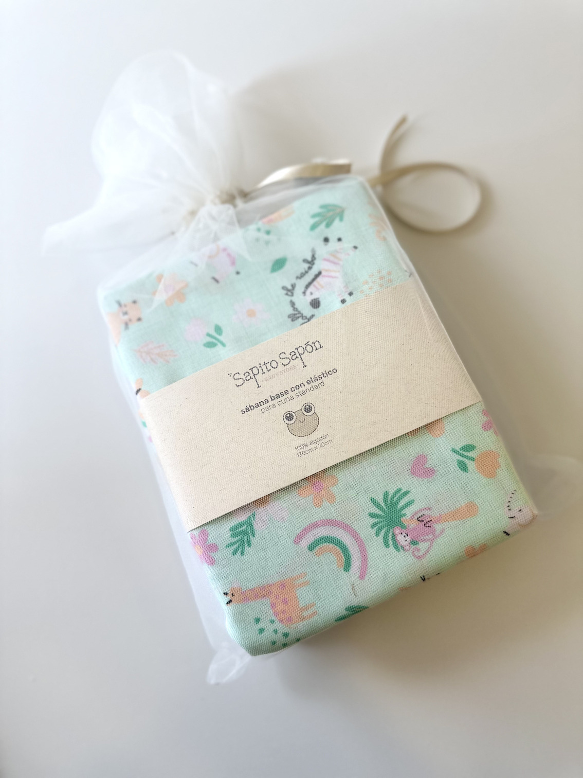 Sábana base con elástico para cuna standard. 100% algodón. 130cm x 70cm.
